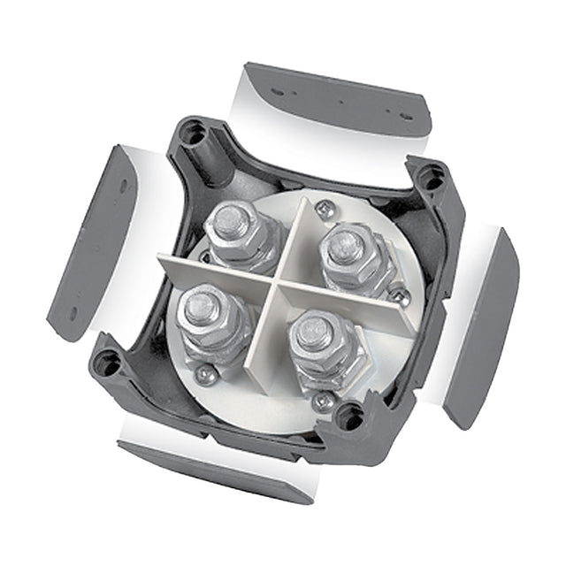 BEP Double Pole Battery Master Switch Designed to isolate both positive and negative circuits as required in some commercial vessel installations. It is not recommended for switching house and start battery systems at the same time for safety reasons. Removable rear cover insulates the rear terminals against short circuit and removable side plates provide access for heavy duty battery cables. Suitable for surface mounting or recessed mounting in a 85mm hole. Screw holes 5mm roundhead. Ignition protected. Specifications: - Continuous rating: 400 amps DC - Intermittent rating: 525 amps DC - Cranking rating: 1500 amps DC for 10 seconds - Voltage rating: 48 volts DC maximum - Terminal stud size: 4 x 12mm