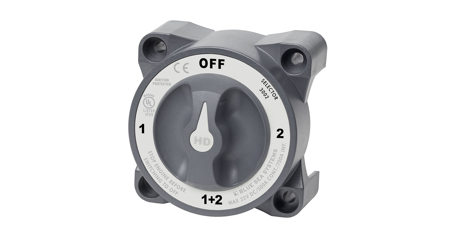 • Make-before-break contact design allows switching between battery banks without power interruption