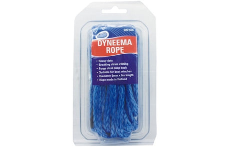 DYNEEMA WINCH ROPE 5MM X 6M WITH SNAP HOOK - 2300KG BREAKING STRAIN JPW6513