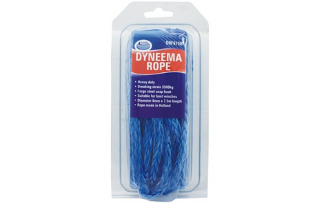 DYNEEMA WINCH ROPE 6MM X 7.5M WITH SNAP HOOK - 3500KG BREAKING STRAIN JPW6514
