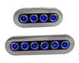 These ABS plastic switch panels feature pre-wired removable blue LED On/Off actuation push button switches. Supplied with o-ring seal and stainless steel face plate to provide a water resistant seal.